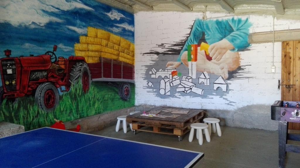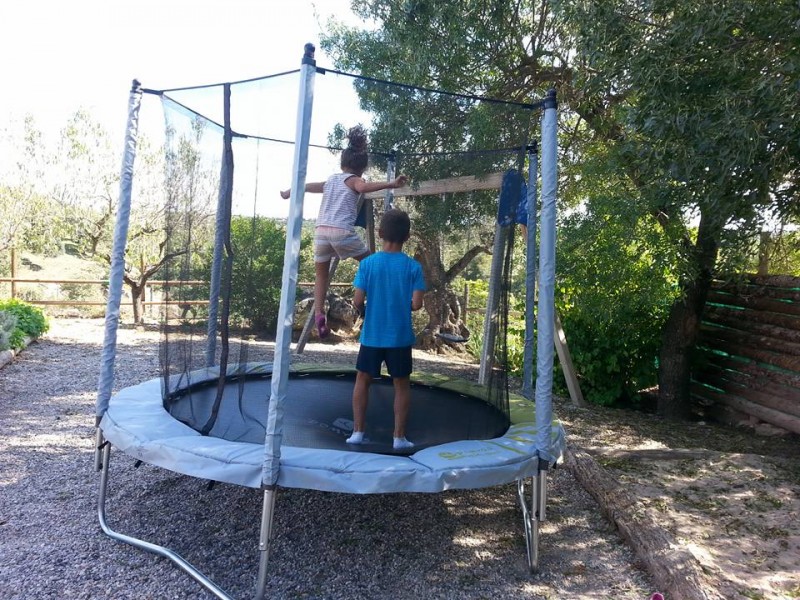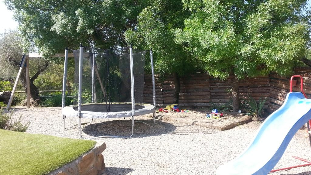 * Zona infantil: cama elástica, futbolín, columpios, tobogán, juegos, ...